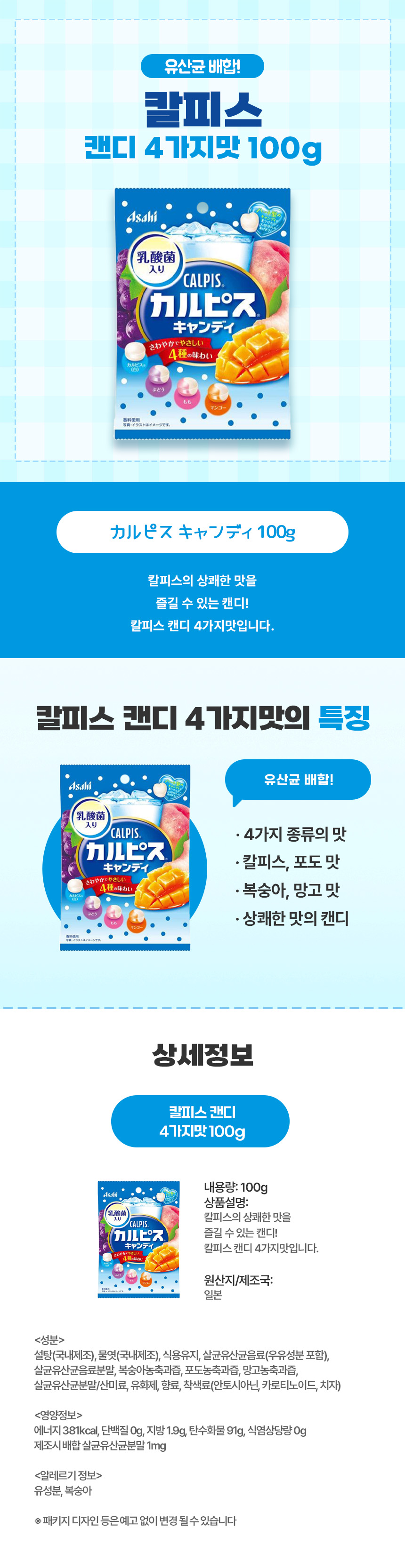 칼피스 캔디 4가지맛 100g