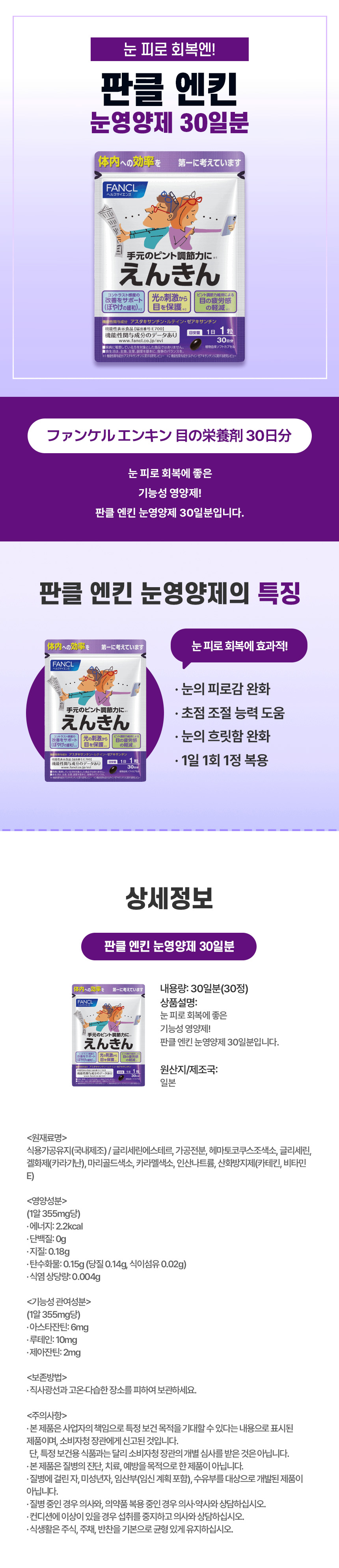 눈 건강 관리엔, 일본 직구 판클 엔킨 눈영양제