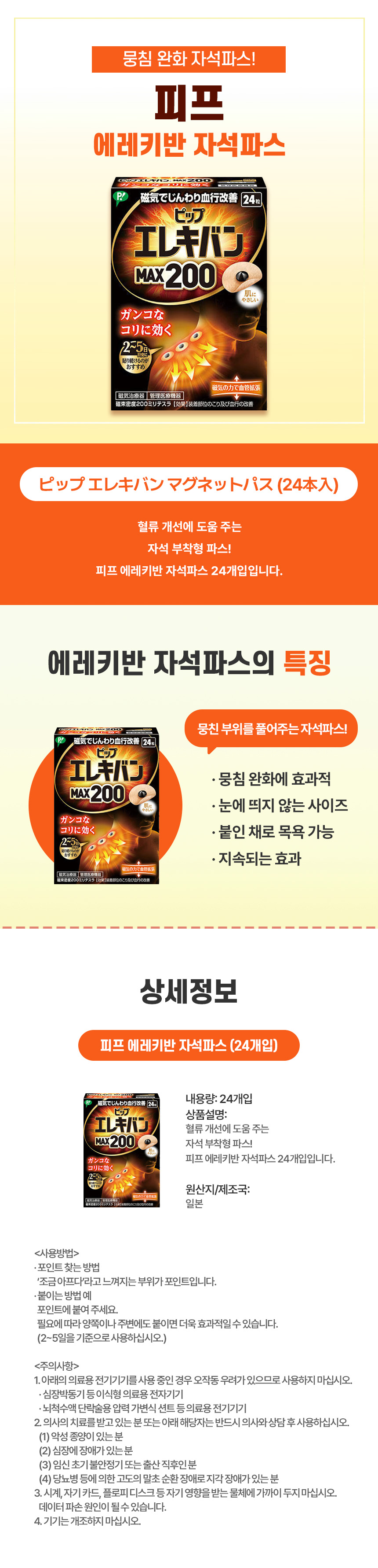 혈액순환 자극엔, 일본 직구 피프 에레키반 자석파스
