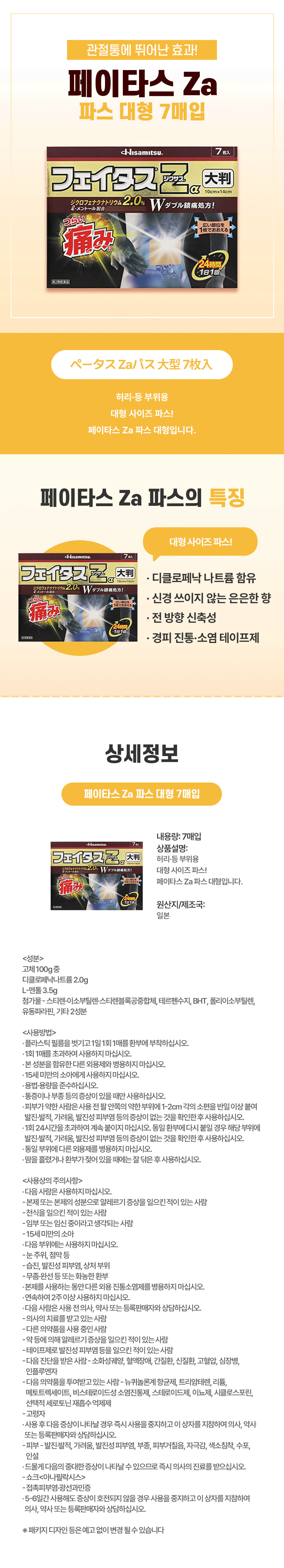 넓은 부위에 효과적인, 일본 직구 페이타스 Za 파스 대형