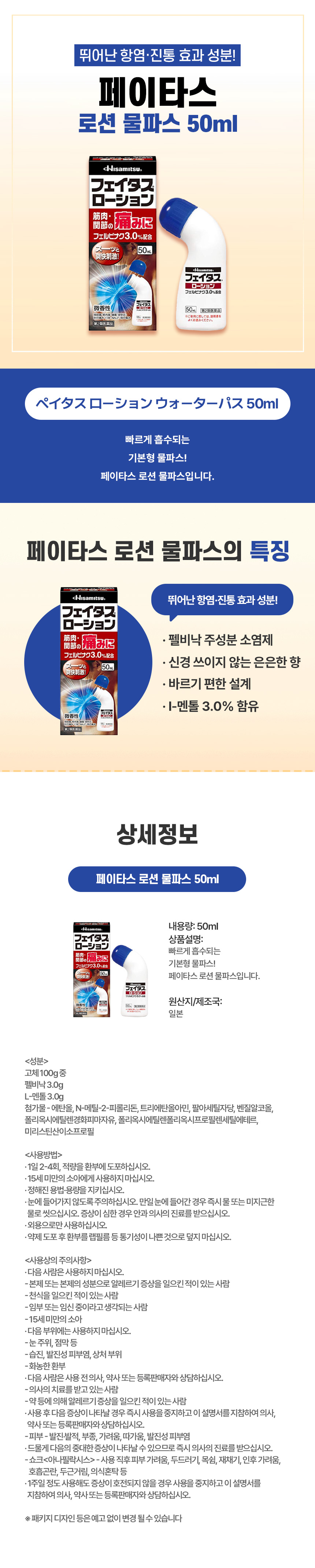 간편하게 바르는, 일본 직구 페이타스 로션 물파스