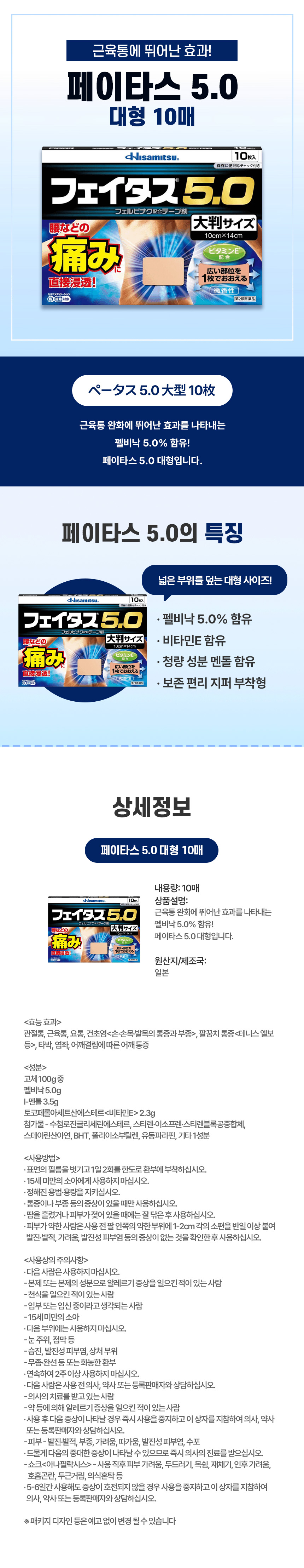 넓은 부위 통증 완화엔, 일본 직구 페이타스 5.0 대형