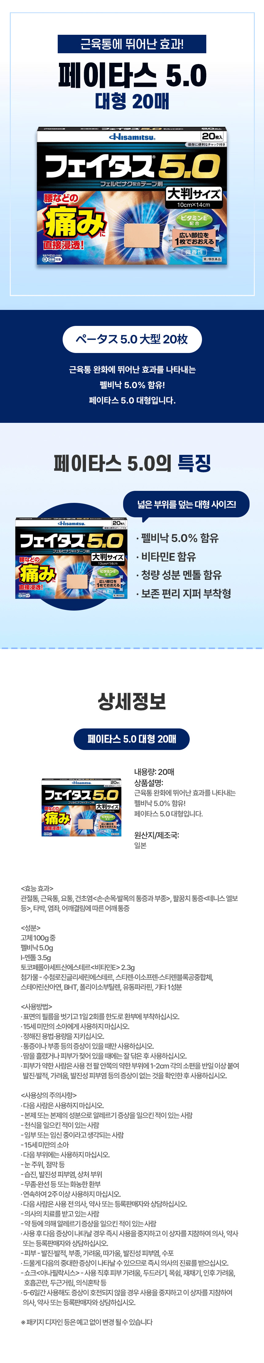 넓은 부위 통증 완화엔, 일본 직구 페이타스 5.0 대형