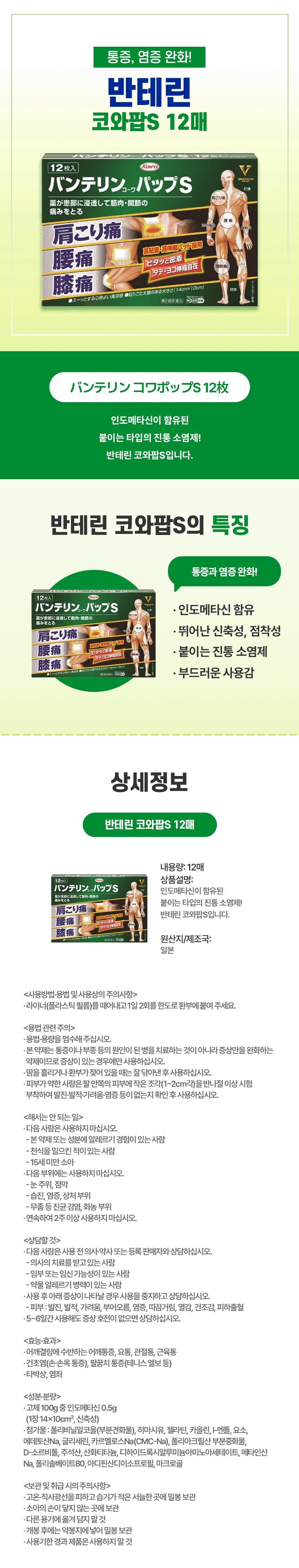 근육통·어깨결림 완화엔, 일본 직구 반테린 코와팝S