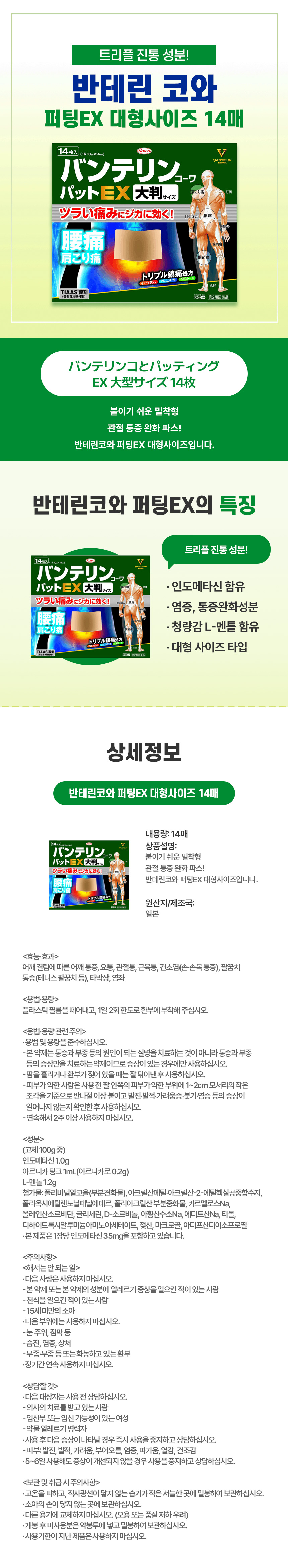 넓은 부위 강력 진통엔, 일본 직구 반테린코와 퍼팅EX 대형사이즈