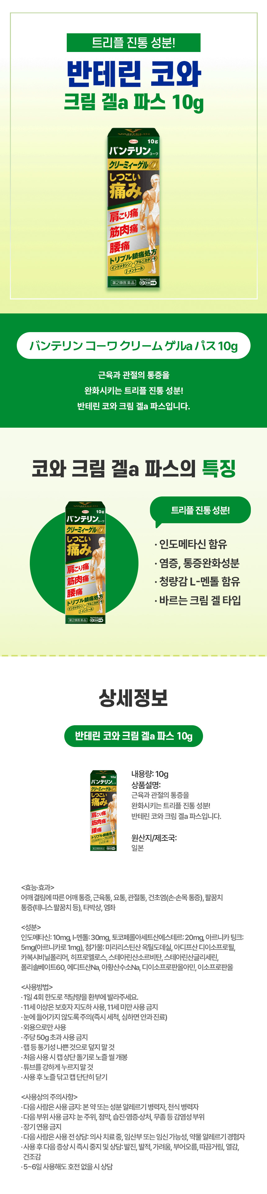 반테린 코와 크림 겔a 파스 10g