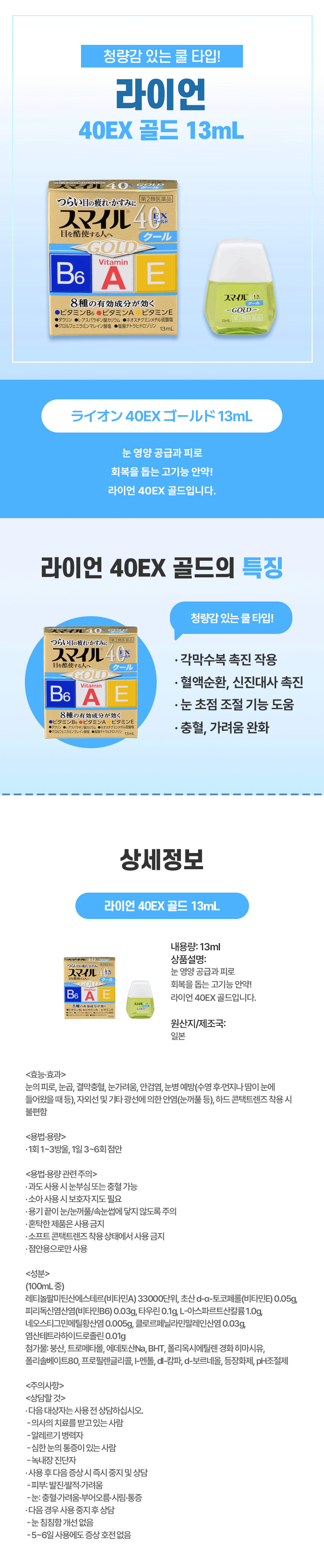 눈 건강 비타민 보충, 일본 직구 라이언 40EX 골드 안약