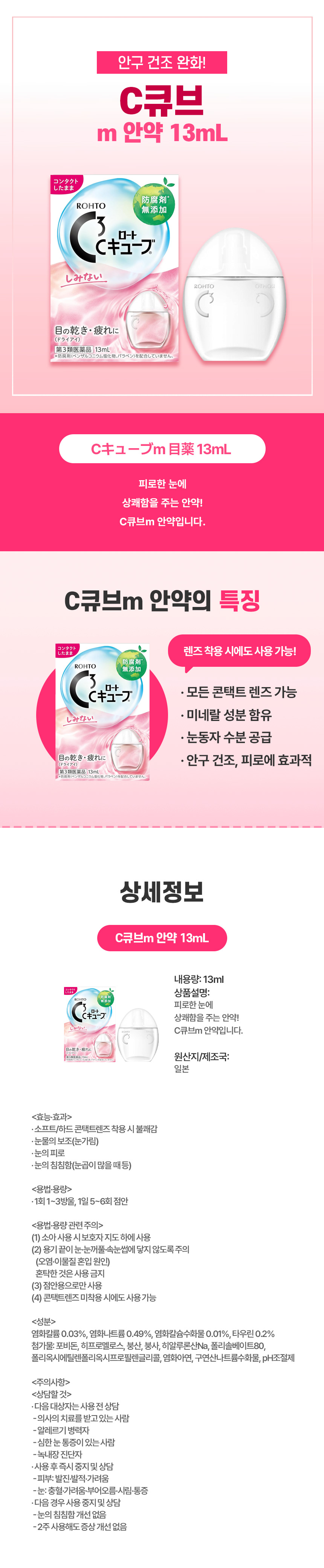 렌즈 착용자용, 일본 직구 C큐브m 안약