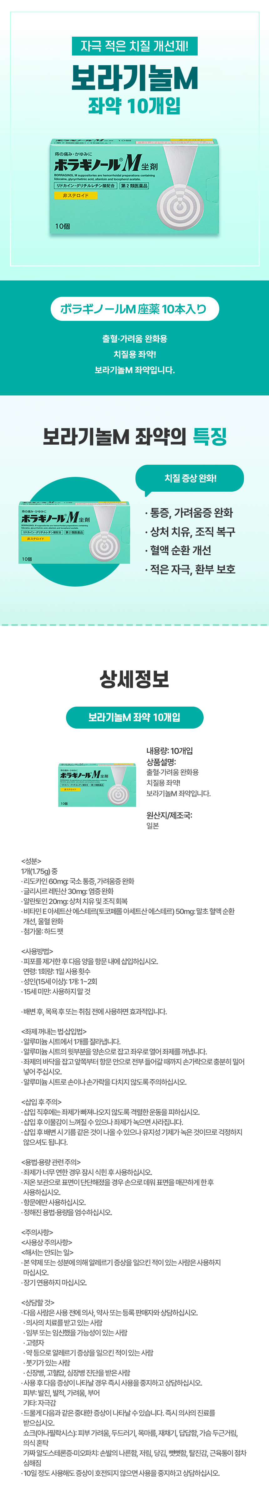 좌약으로 관리할 땐, 일본 직구 보라기놀M 좌약