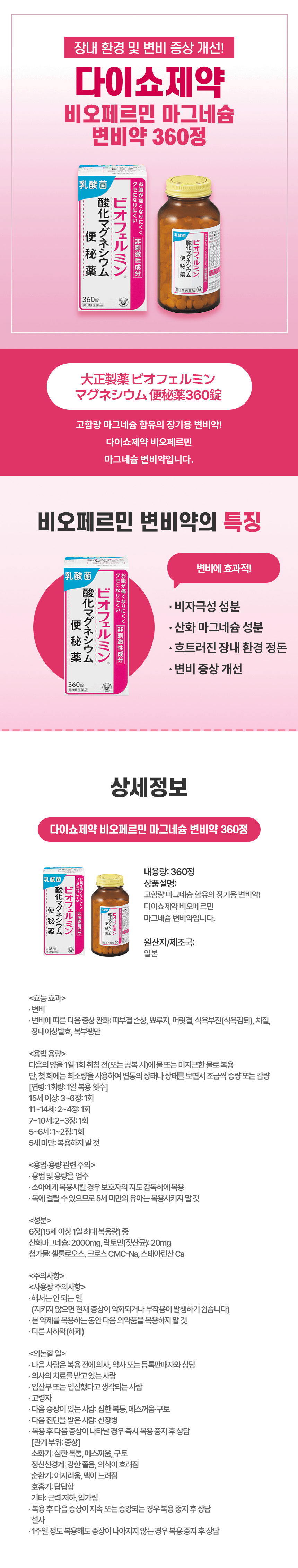 다이쇼제약 비오페르민 마그네슘 변비약 360정