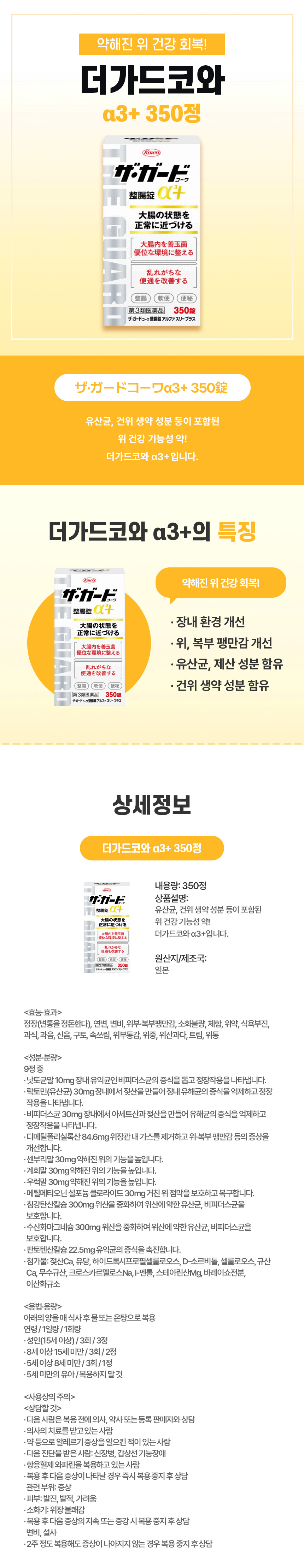 속 더부룩함 완화엔, 일본 직구 더가드코와 α3+ 350정