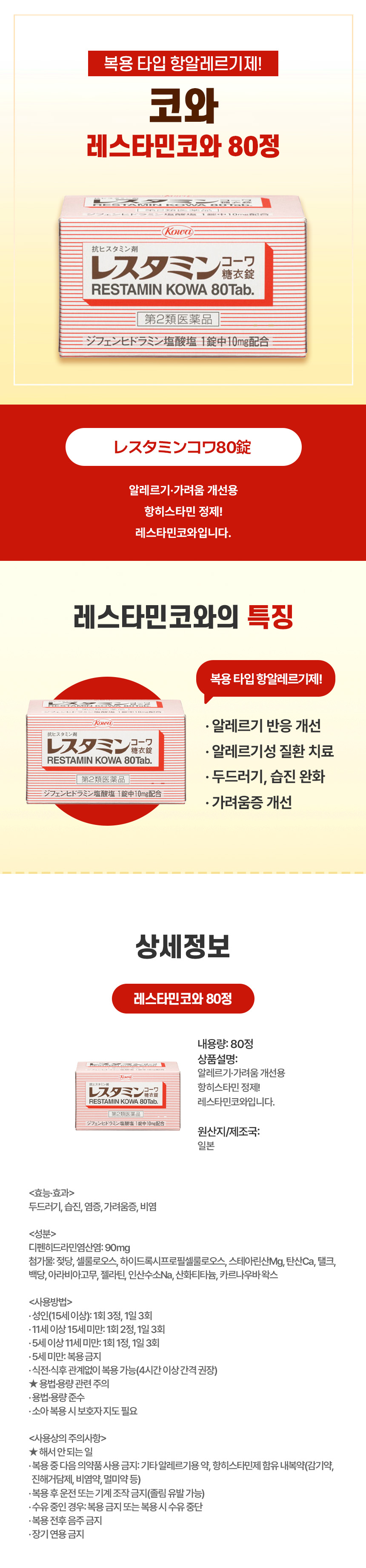 계절 알레르기 완화엔, 일본 직구 레스타민코와