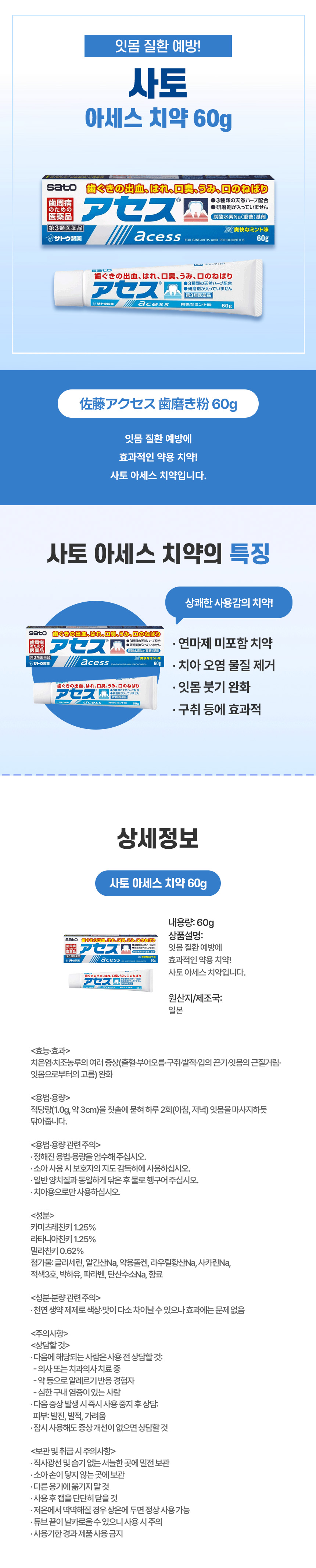 사토 아세스 치약 60g