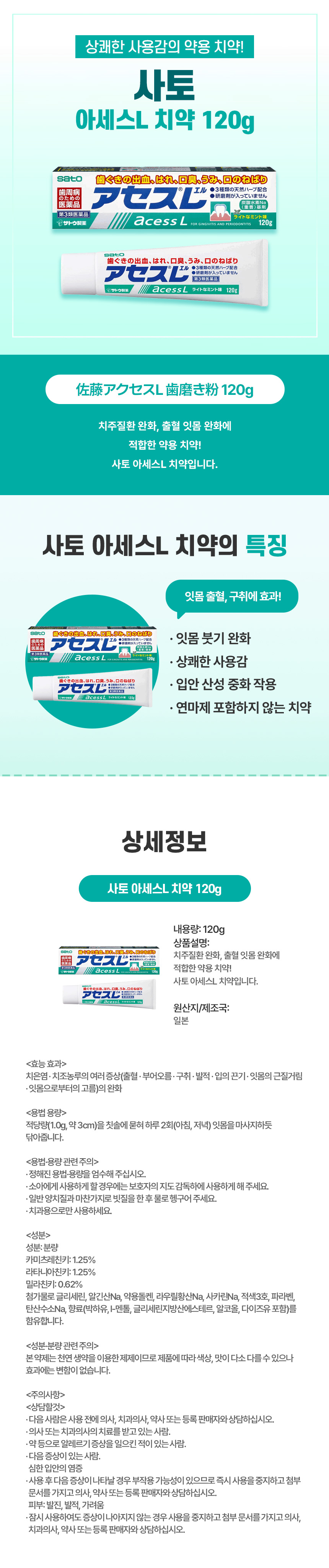 사토 아세스L 치약 120g
