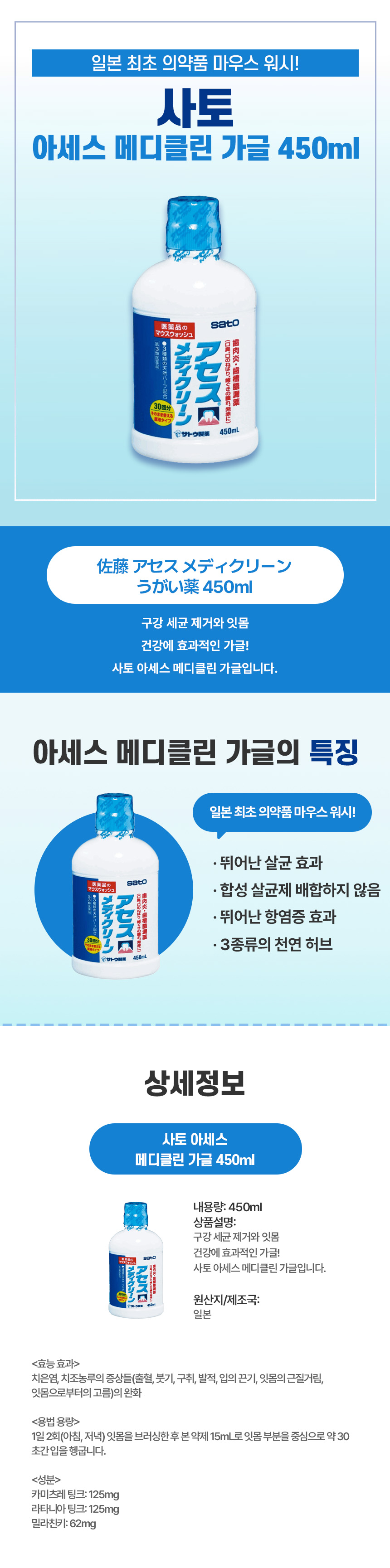 잇몸 염증 예방 가글 케어, 일본 직구 사토 아세스 메디클린 가글