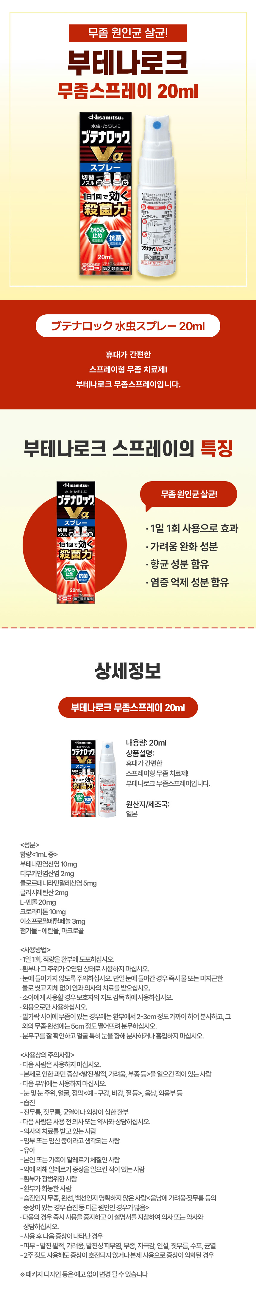 빠른 흡수력의 무좀 스프레이, 일본 직구 부테나로크