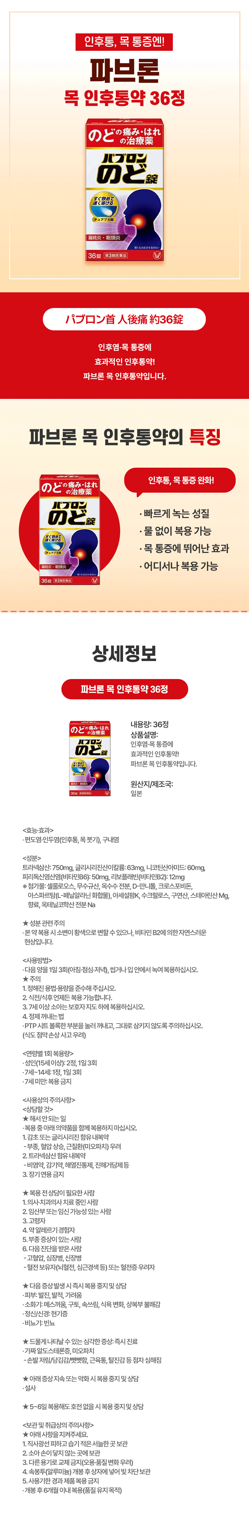 목 통증 완화에 좋은 인후통약, 일본 직구 파브론