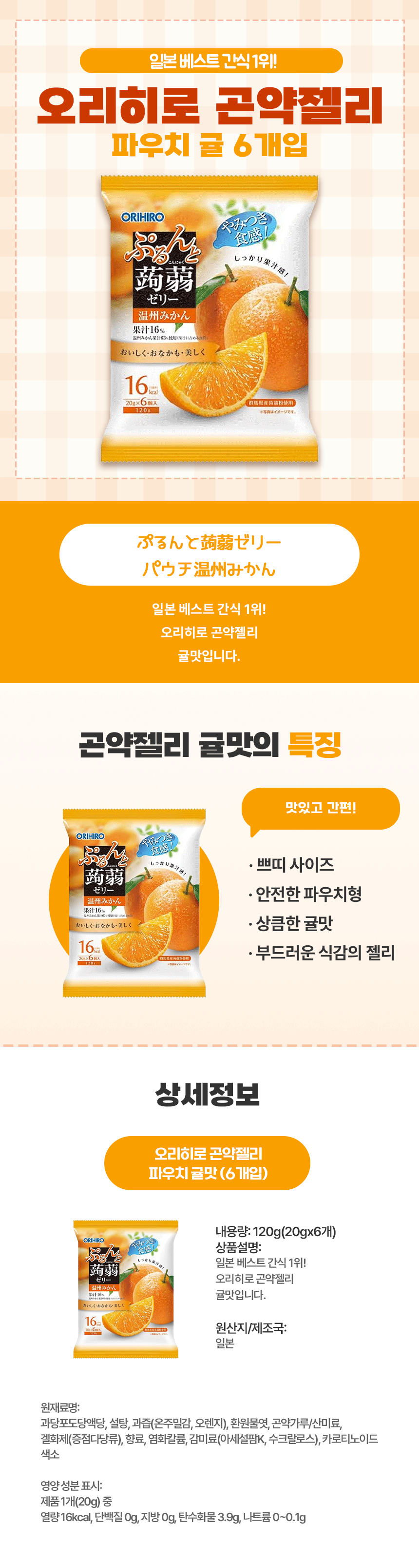 오리히로 곤약젤리 파우치 귤 6개입