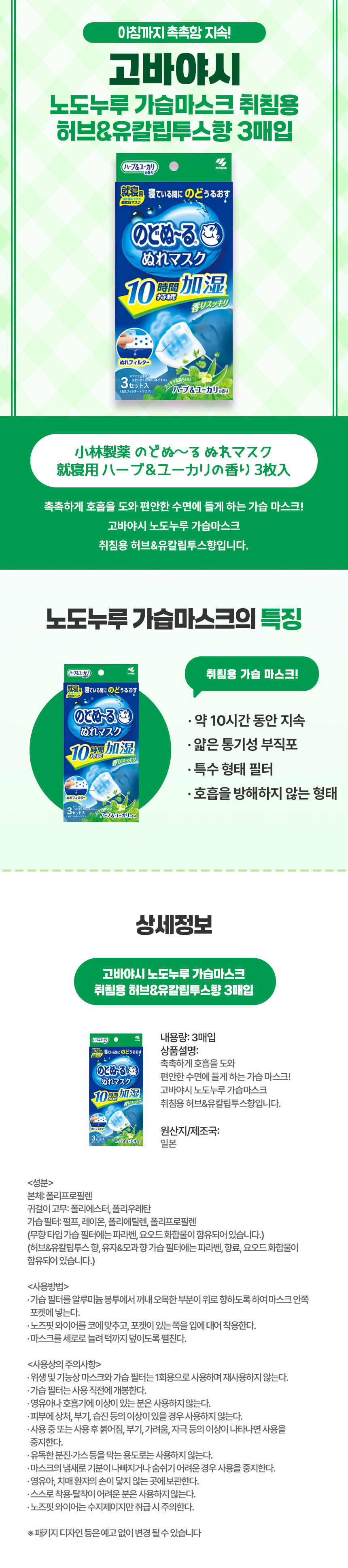 허브&유칼립투스 향으로 밤새 상쾌하게 목을 촉촉하게! 노도누루 취침용 마스크