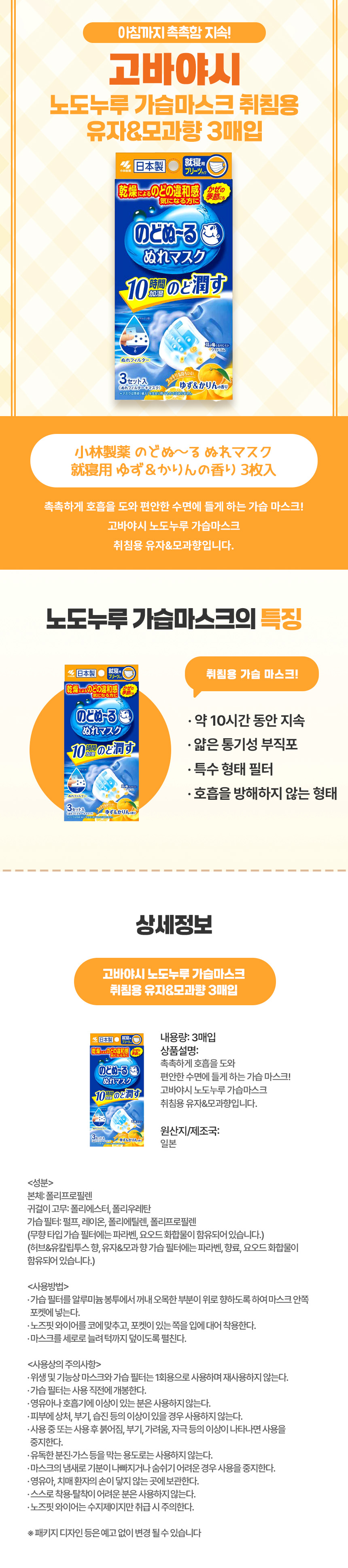 고바야시 노도누루 가습마스크 취침용 유자&모과향 3매입