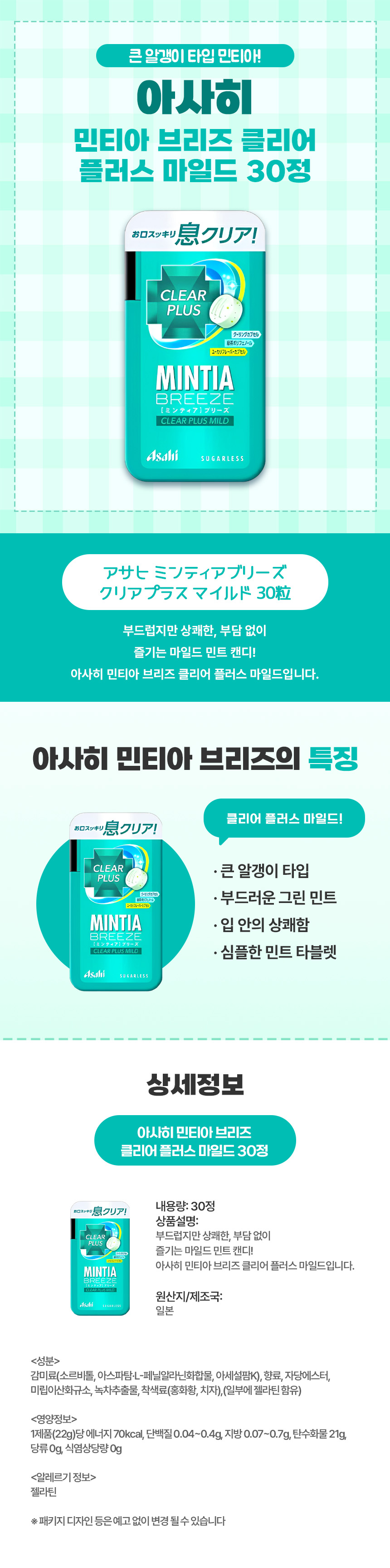 아사히 민티아 브리즈 클리어 플러스 마일드 30정