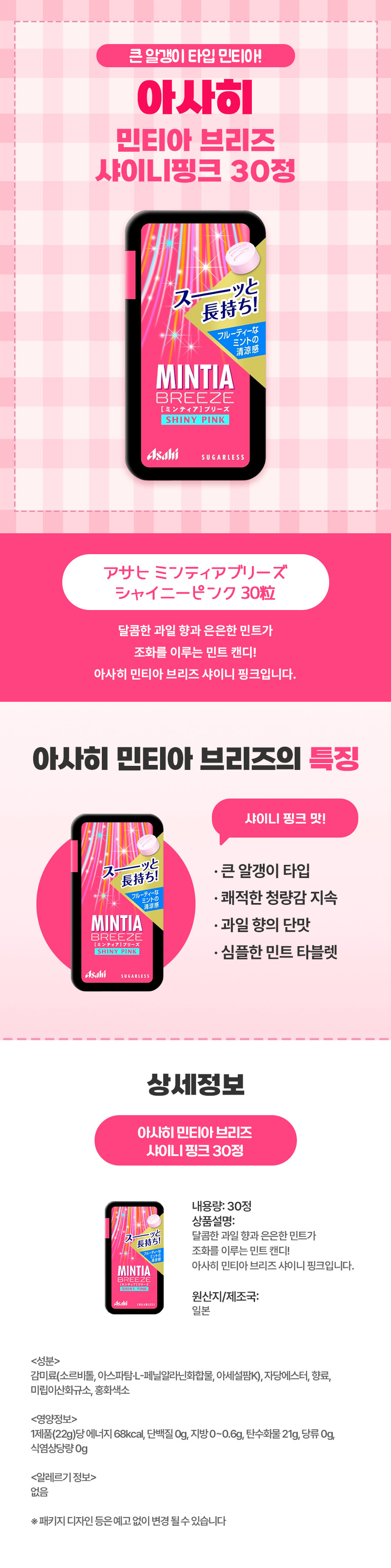 달콤한 과일 향과 은은한 민트가 조화를 이루는, 아사히 민티아 브리즈 샤이니 핑크 30정