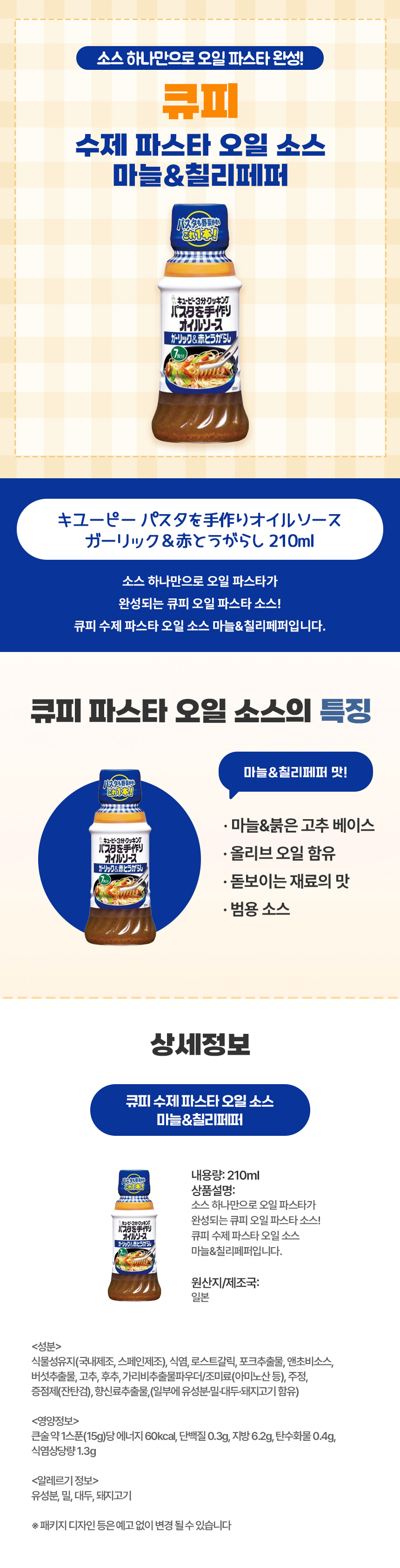 매콤한 마늘과 칠리의 오일 소스, 일본 직구 큐피 파스타 오일