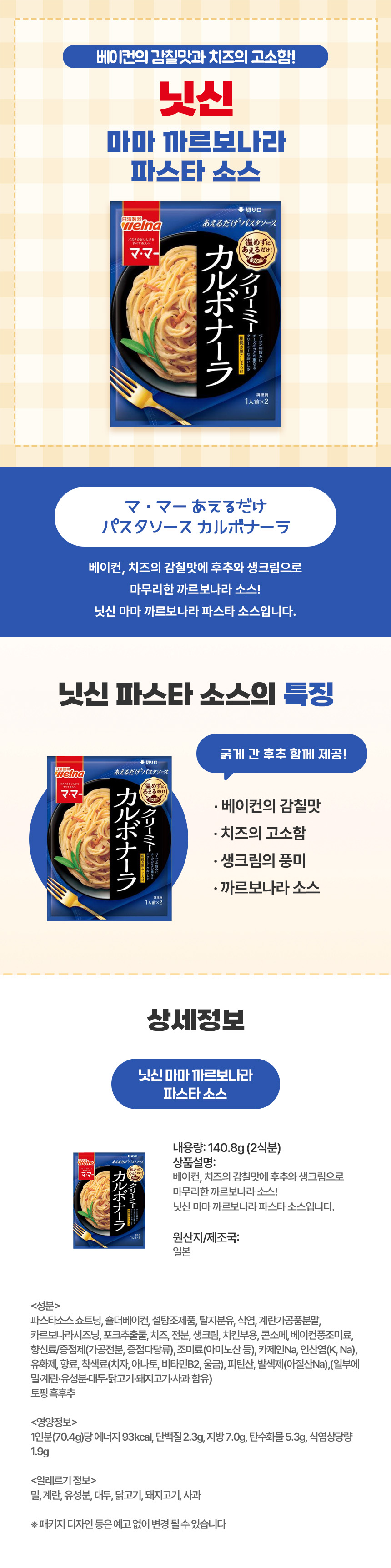 크리미하고 부드러운 까르보나라, 일본 직구 닛신 마마 파스타 소스