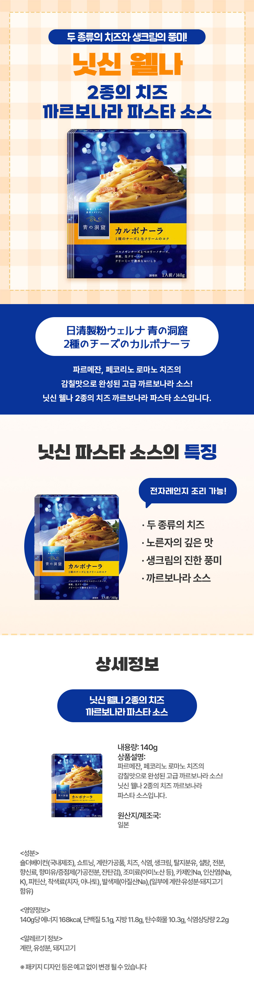 2종 치즈가 어우러진 깊은 풍미, 일본 직구 닛신 웰나 까르보나라 소스