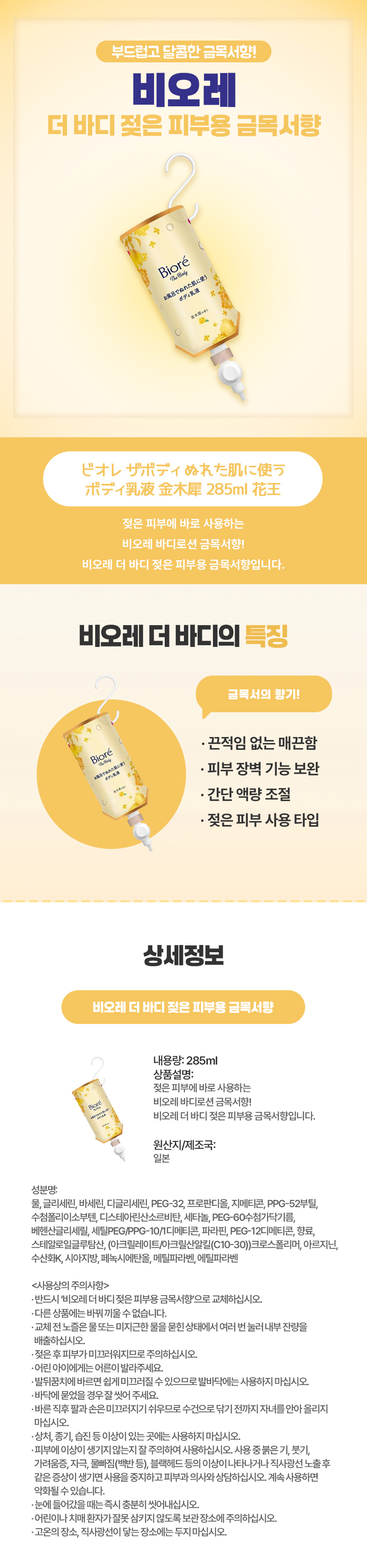 촉촉한 젖은 피부에 스며드는 달콤한 향, 일본 직구 비오레 더 바디 금목서향