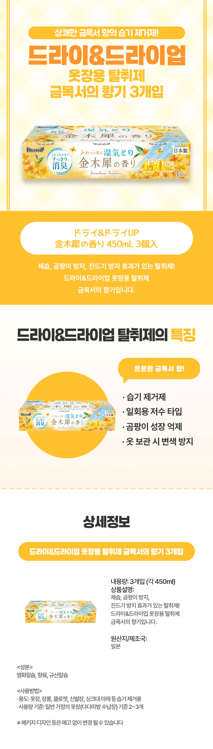 드라이&드라이업 옷장용 탈취제 용기 타입 금목서의 향기 3개입