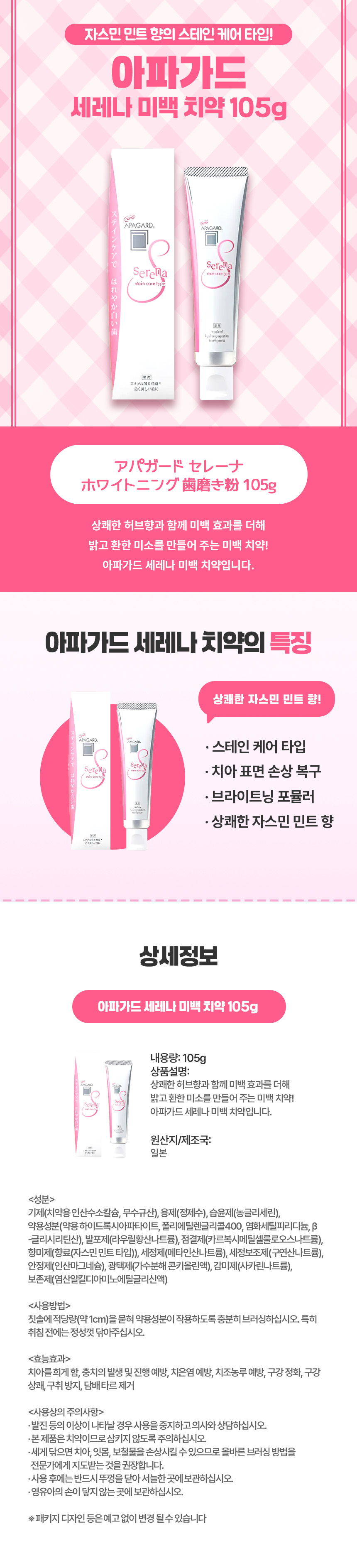 아파가드 세레나 미백 치약 105g