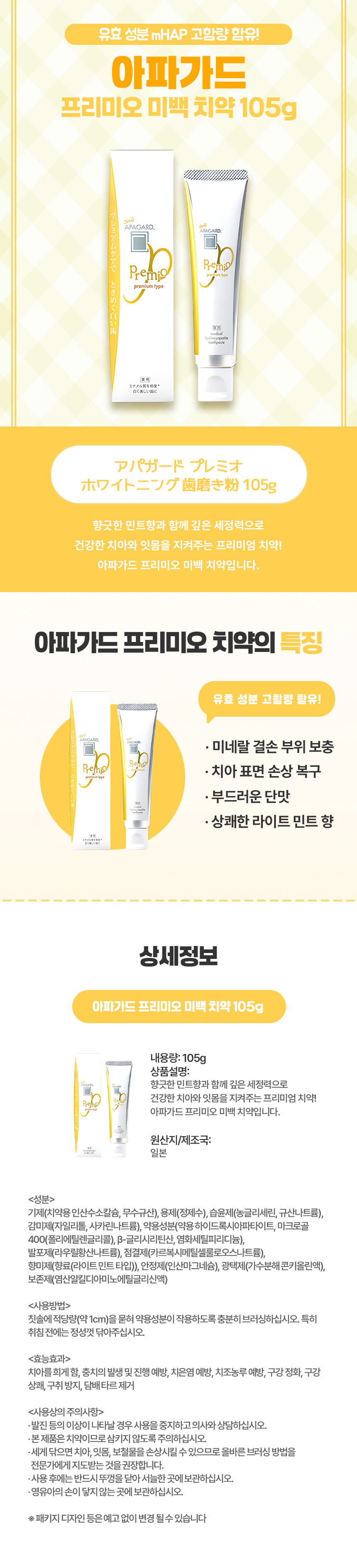아파가드 프리미오 미백 치약 105g