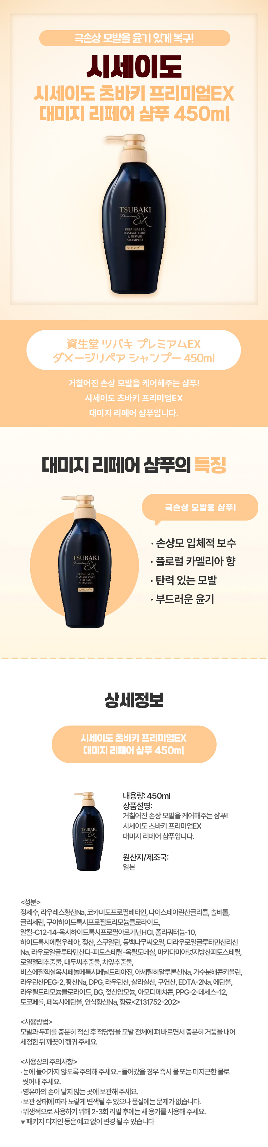 시세이도 츠바키 프리미엄EX 데미지 리페어 샴푸 450ml