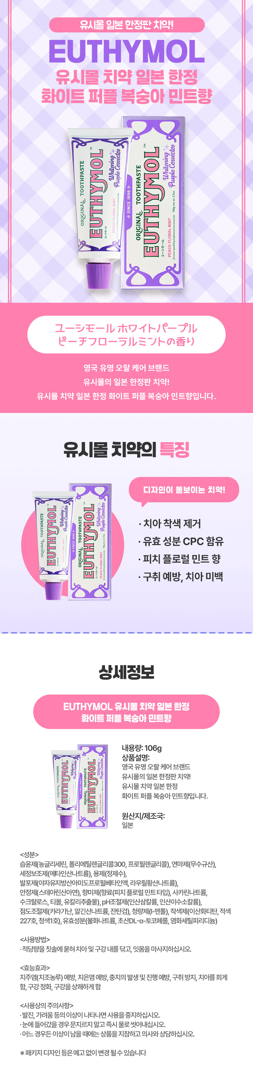 화이트 퍼플 라인의 산뜻한 복숭아 민트 향으로 양치 후 입안을 개운하게 유지하는 데 도움을 줄 수 있습니다.