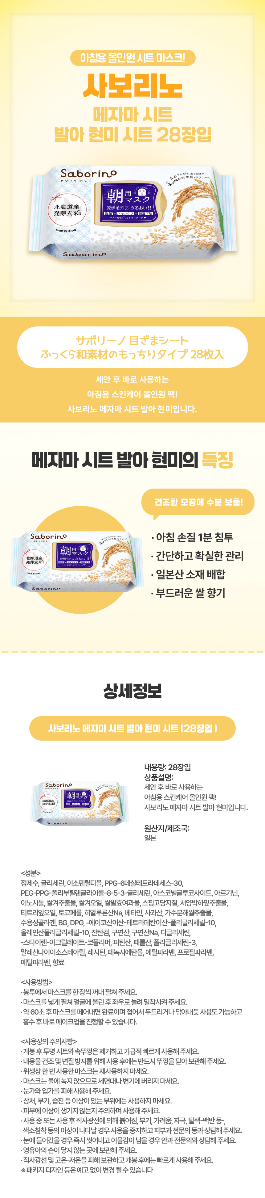 피부에 쫀쫀한 영양감을 채워 하루 컨디션을 끌어올려주는 스페셜 시트팩, 일본 직구 사보리노 발아 현미 시트