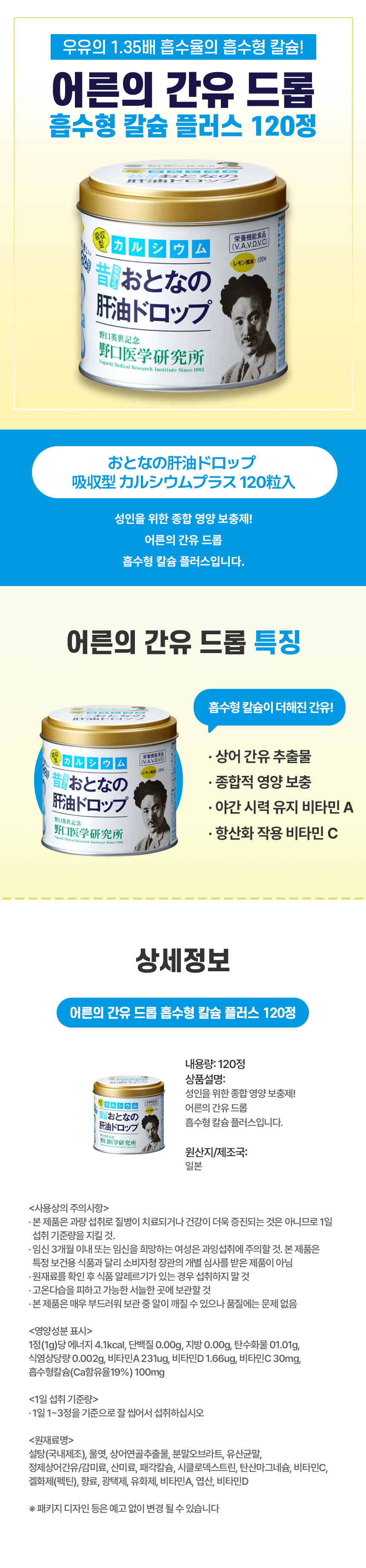성인 간유 드롭은 성인 영양 균형을 고려해 칼슘을 함께 배합한 것이 특징입니다.